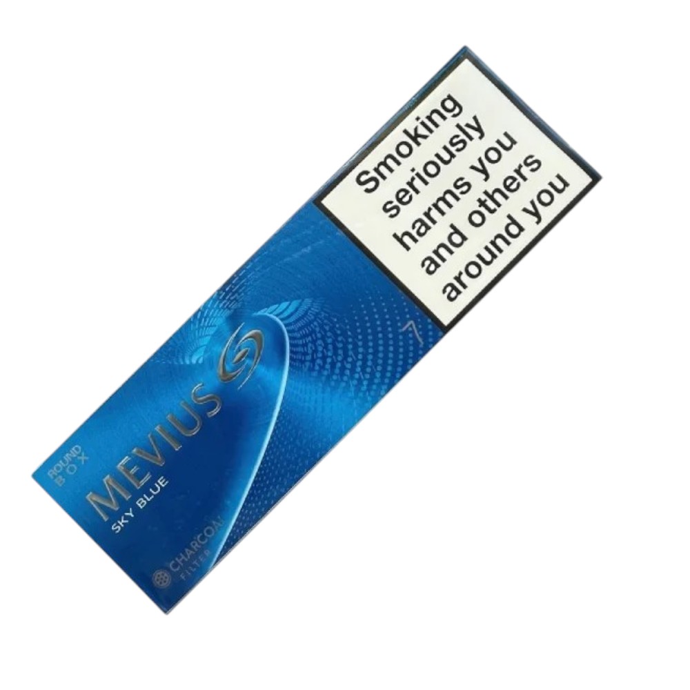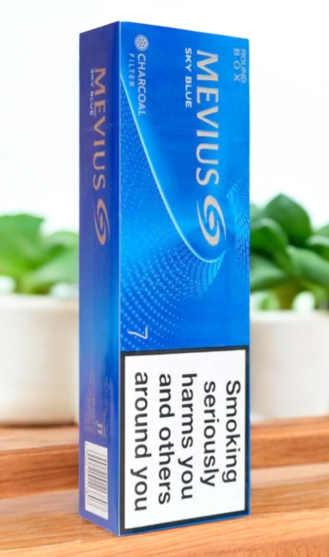 Mevius Sky Blue 7 ซองแข็ง เป็นบุหรี่สายเย็นจากแบรนด์ Mevius มี Tar 7 มก. และ Nicotine 0.5 มก. ผลิตจากญี่ปุ่น มีกลิ่นหอมของผลไม้ 🍏 1 แพ็คบรรจุ 20 ซอง และ 1 ซองบรรจุ 20 มวน