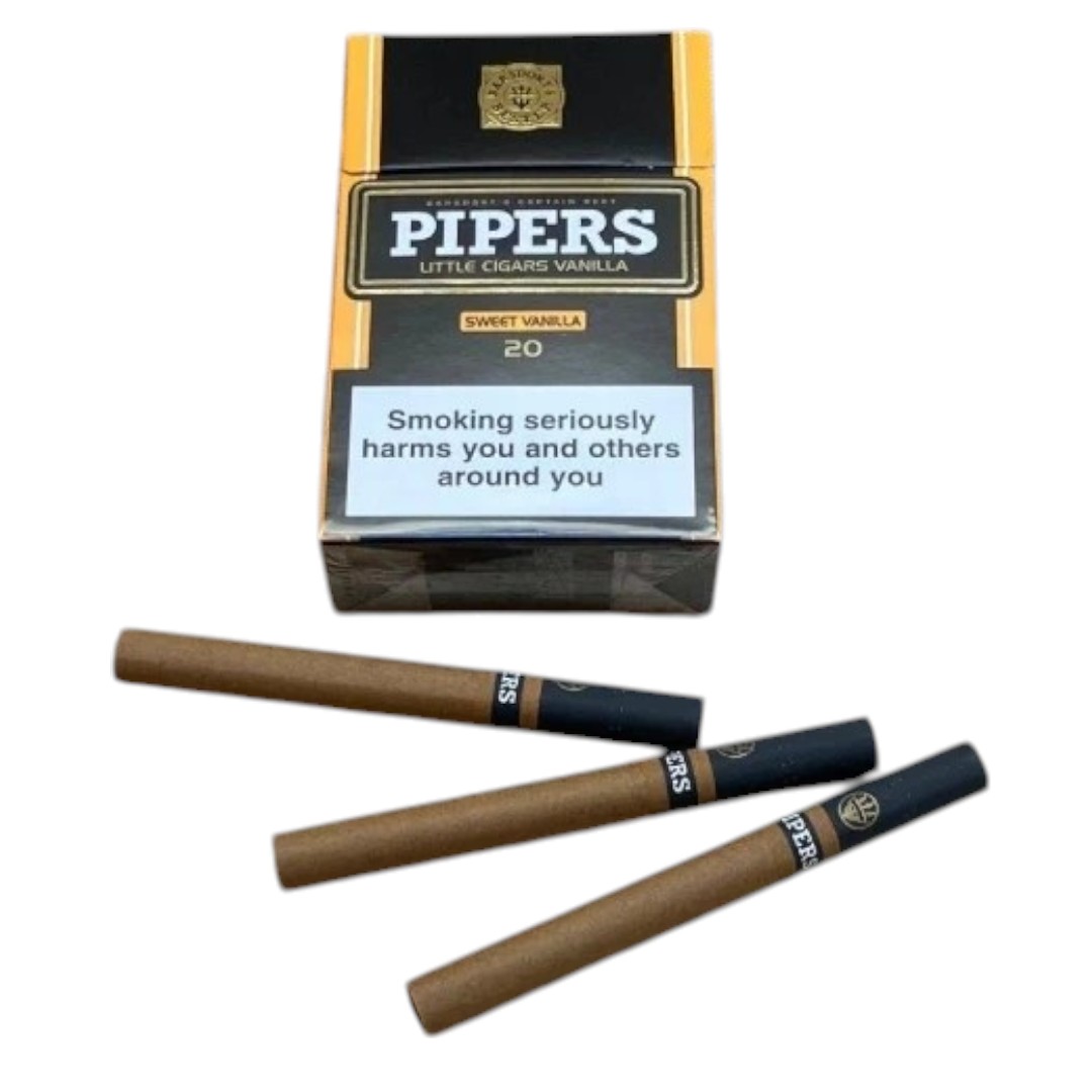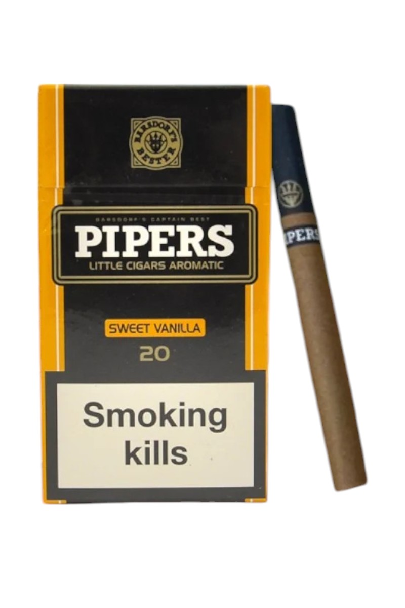 Pipers Sweet Vanilla ซองแข็ง เป็นบุหรี่ที่ได้รับความนิยมในหมู่นักสูบที่ชื่นชอบรสชาติหวาน โดยมีความโดดเด่นที่กลิ่นหอมของวานิลลาที่ทำให้การสูบมีความนุ่มนวลและไม่ทำให้รู้สึกแสบคอ Tar อยู่ที่ 6 มิลลิกรัม และ Nicotine 0.5 มิลลิกรัม เหมาะสำหรับผู้ที่ชอบบุหรี่ที่มีรสชาติหวานและไม่แรงเกินไป แบรนด์ Pipers มาจากอินโดนีเซีย ซึ่งเป็นที่รู้จักในด้านการผลิตบุหรี่คุณภาพสูง แคปซูลไม่มี แต่กลิ่นหอมหวานจะทำให้คุณรู้สึกผ่อนคลายและเพลิดเพลินกับการสูบ